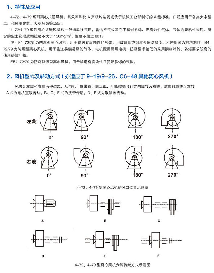 離心風機可制成右旋和左旋兩種型式。從電動機一側正視:葉輪順時針旋轉,稱為右旋轉風機;葉輪逆時針旋轉,稱為左旋轉風機。離心式風機由機殼、主軸、葉輪、軸承傳動機構及電機等組成。 機殼:由鋼板制成堅固可靠,可為分整體式和半開式,半開式便于檢修。 葉輪:由葉片、曲線型前盤和平板后盤組成。 轉子:應做過靜平衡和動平衡,保證轉動平穩,性能良好。 傳動部分:有主軸、軸承箱、滾動軸承及皮帶輪(或聯軸器)組成。