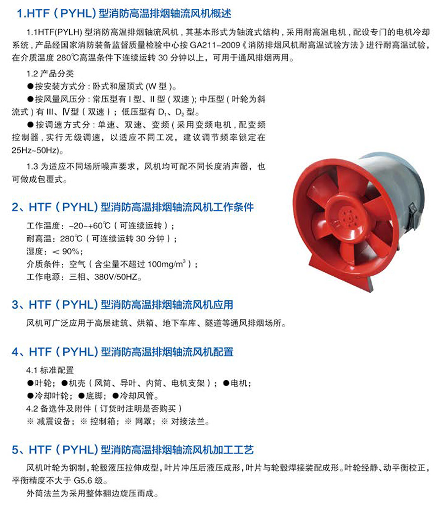 消防排煙風(fēng)機主要有葉輪,機殼,集流器,導(dǎo)流片,電動機等部件組成。葉輪采用有子午加速特點的扭曲翼形葉片焊接在輪殼上,經(jīng)動平衡檢驗,超速測驗,有良好的空氣動力性能。